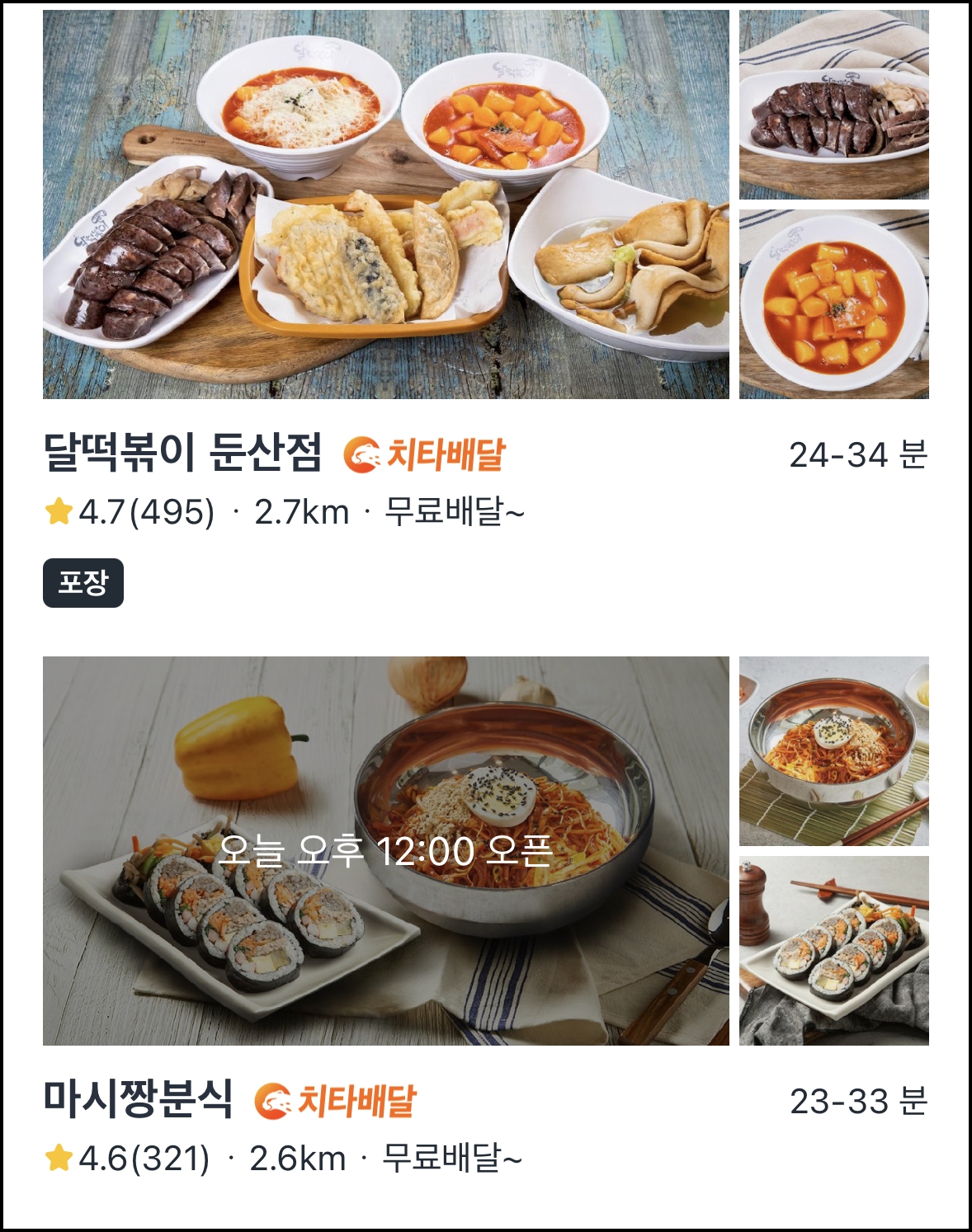 쿠팡이츠는 매장 밑에 포장이라고 표기가 되어있습니다.